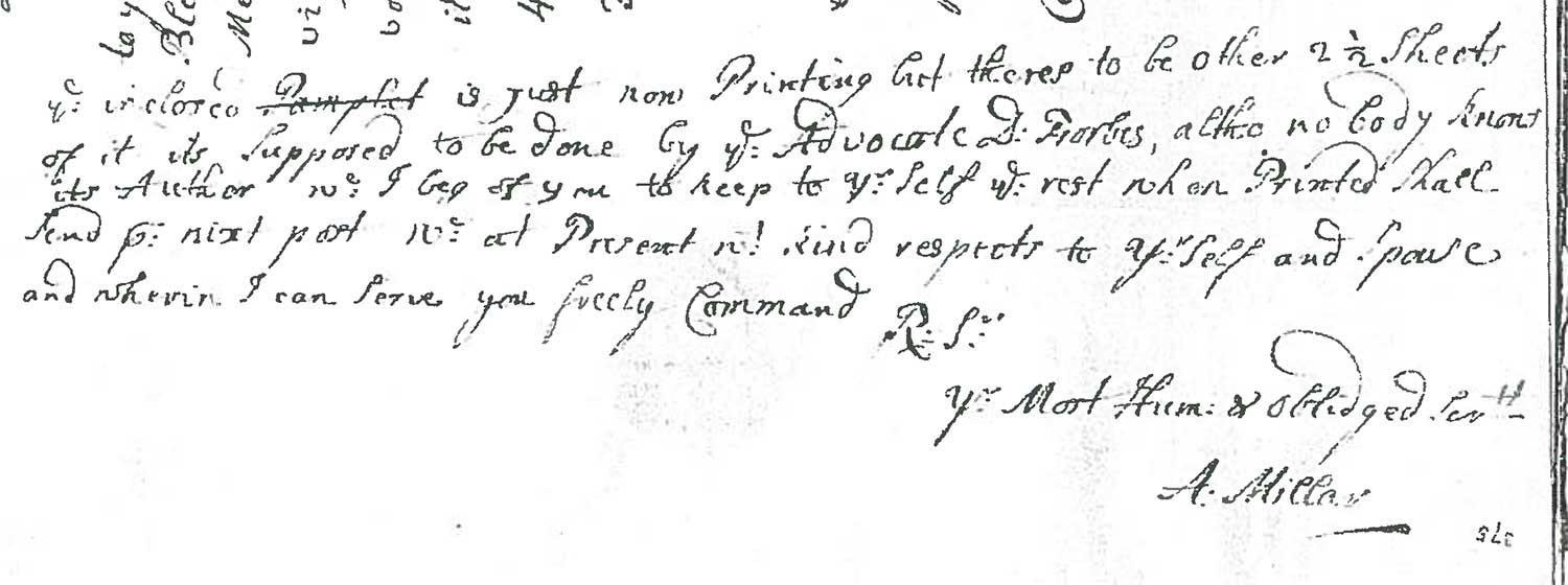 This was probably A Letter from a Fyfe Gentleman, at present in Edinburgh, to the Chief Magistrate of a Burgh in Fyfe, Upon the present Situation, with regard to the Malt-Tax: By the Author of a former Letter from Fyfe upon the same Subject, dated 31 December, 1724. Millar’s uncertainty over whether the material he sent comprises a “pamphlet” may suggest that A Letter was meant to be supplemented by further pamphlets by the same author.